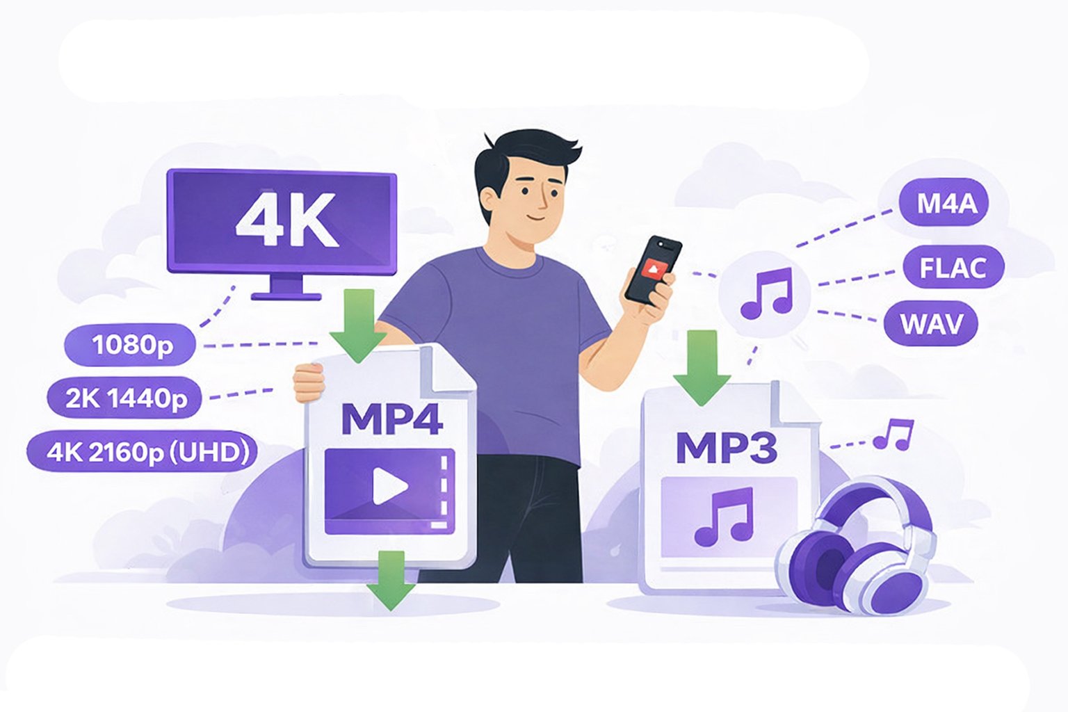- Professional Audio Extraction: Want to listen to a podcast or a new song on the go? Use our YouTube to MP3 feature to extract high-bitrate audio (up to 320kbps) in formats like M4A, WAV, and FLAC.